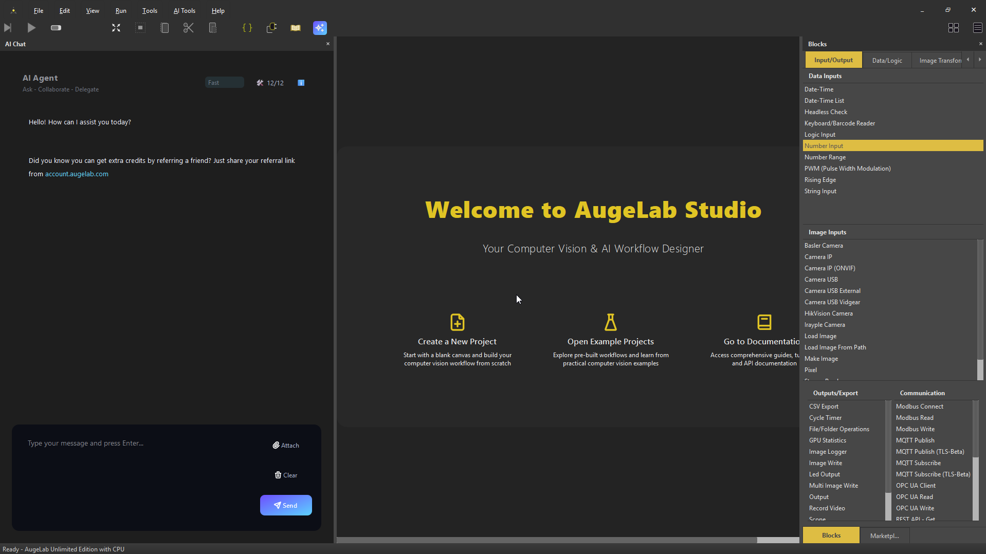 AugeLab Studio es una plataforma no-code de vanguardia, multiplataforma y con capacidades agenticas, diseñada para aplicaciones de visión e integración sin fricciones.